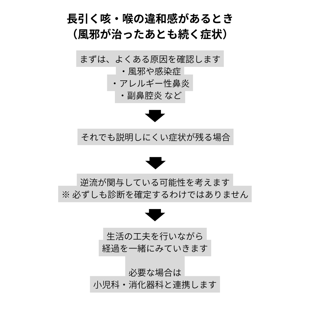 - 子どもの咳や喉の違和感が長引くことは珍しくありません